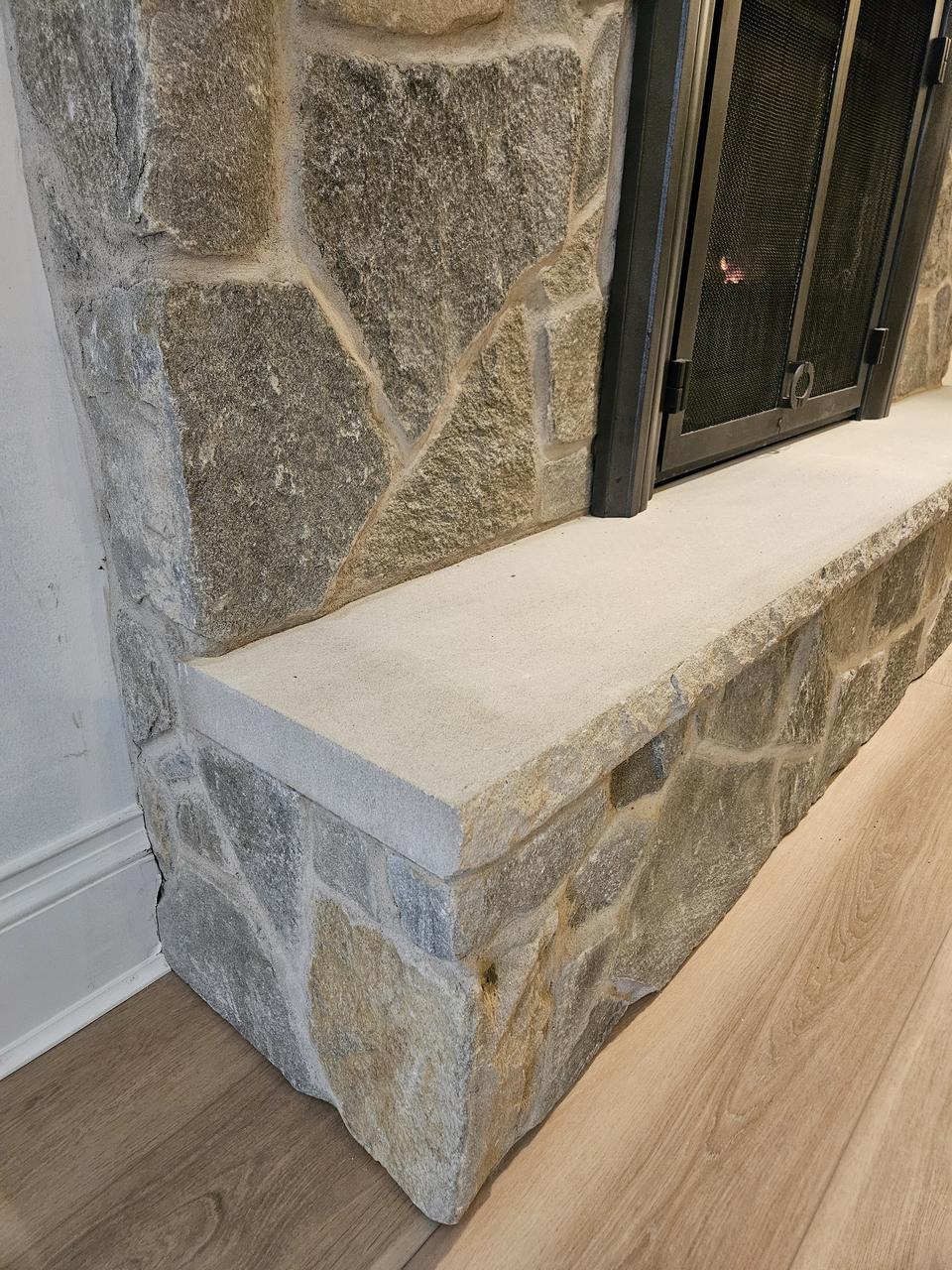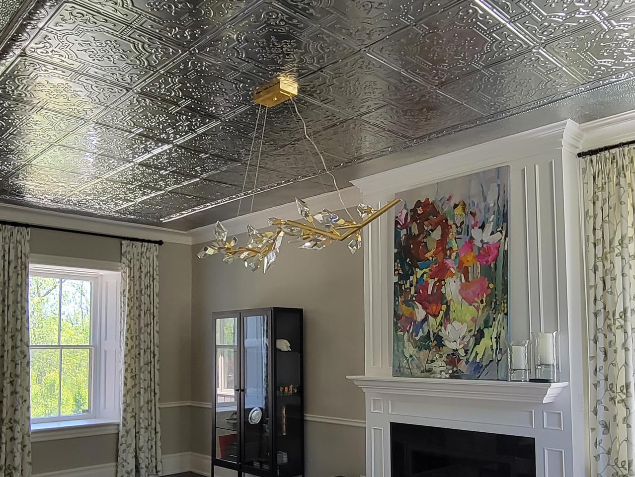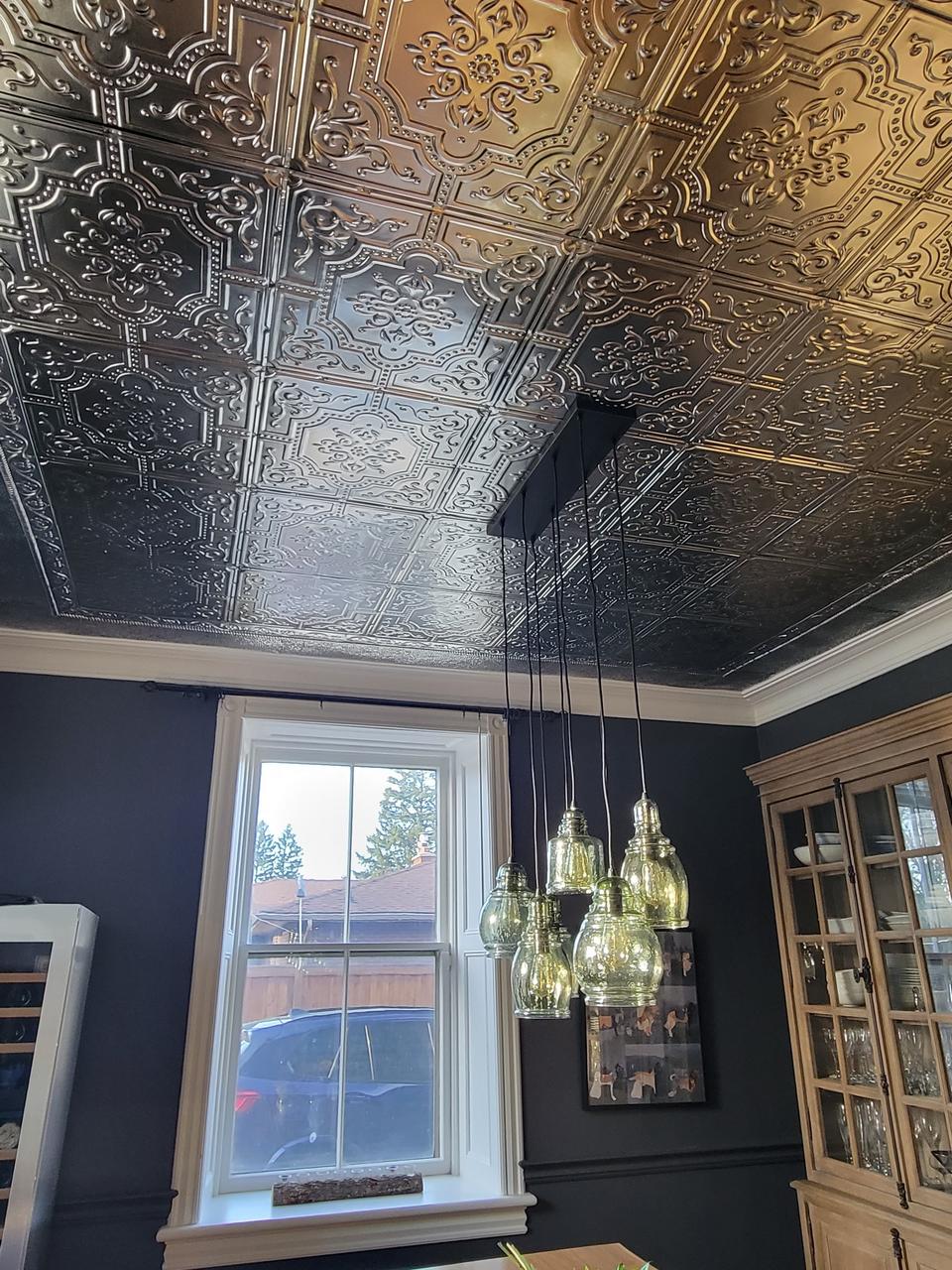 There was a long list of items for this 19th century home including a new walk-in pantry, custom tin ceilings, a powder room with custom built-ins incorporating an original stain glass window and a basement renovation including a field stone fireplace. We also sprayfoamed the exterior basement walls to improve air tightness and installed premium large plank vinyl flooring with cork bottom and vapour barrier to help warm up the floors. The client selected a lot of unique products and finishes to truly make this project one-of-a-kind.